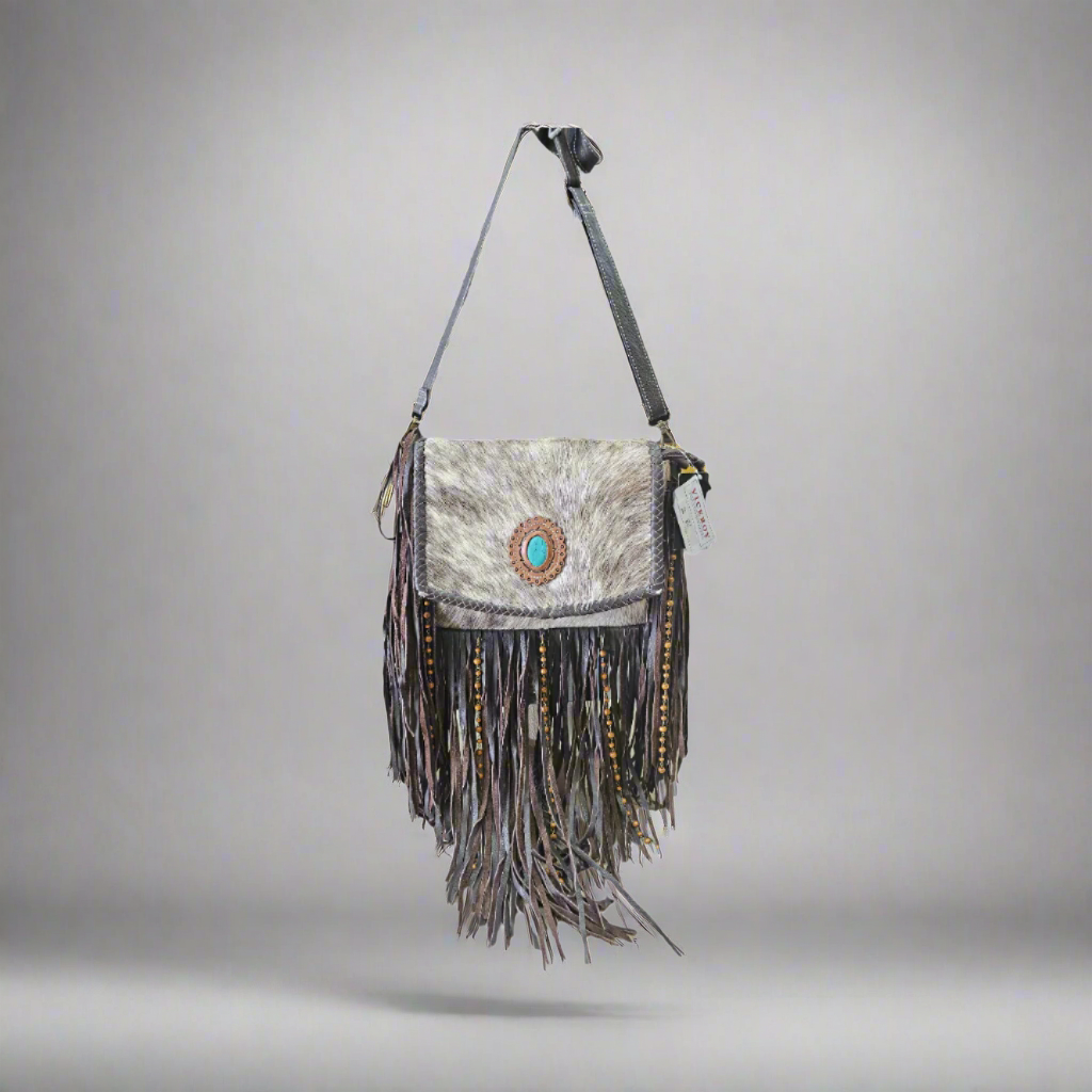 LV-07 Large Cowhide Shoulder bag w/ fringes and beads